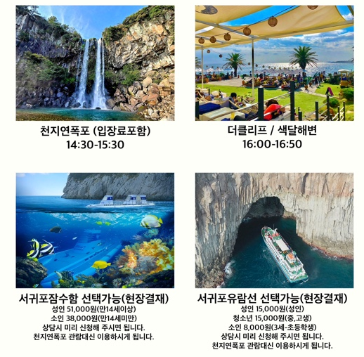 제주도에서 가볼 만한 곳을 여행 계획 중이신 분이라면 제주도에 많은 투어 상품과 다양한 볼거리, 먹을거리들을 찾고 계실 텐데요. 그중에서도 이번에는 제주도에서 가볼 만한 곳인 서귀포 잠