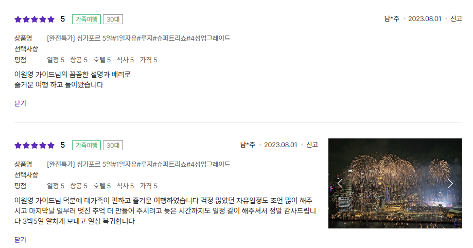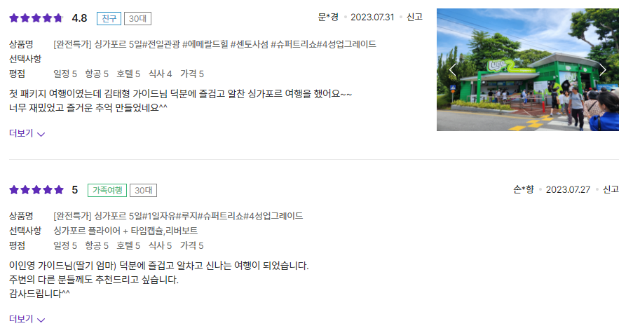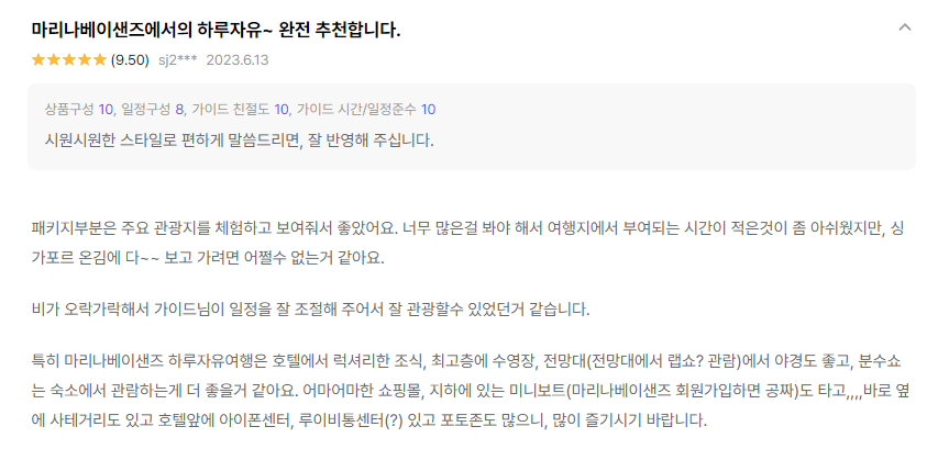싱가포르 패키지 후기