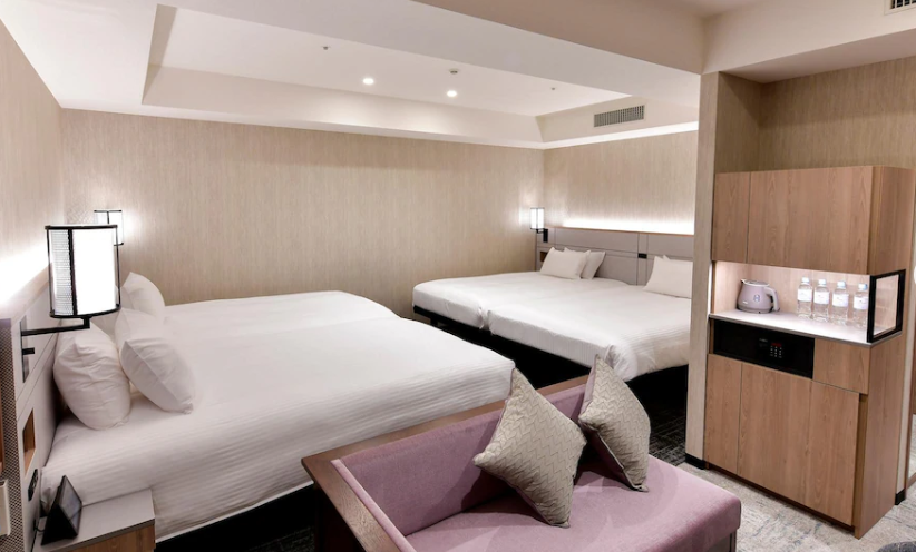 - 아사쿠사 토부 호텔은 트윈룸 A, B타입, 디럭스 킹 더블룸, 스탠더드 더블 룸, 컴포트 더블룸, 슈페리어 트윈룸, 헬로 키티 쿼드러플 룸등 다양한 타입의 객실이 많은 것이 장점으로 뽑을 수 있겠습니다. 특히 친구들과 트윈룸을 찾고 계신다면 여기가 제격입니다. 호텔 바로 앞에 지하철역이 있어 편리성이 좋았다는 후기가 많았고 고층에 스카이트리뷰가 보이는 객실도 있어 전망은 말할 것도 없고요. 직원들이 친절하다는 평가도 많았으며 밤에는 사람들이 북적거리지 않는 센소지도 구경 가능하며 위생과 신축의 장점이 호텔 추천 드리는 이유이기도 합니다.